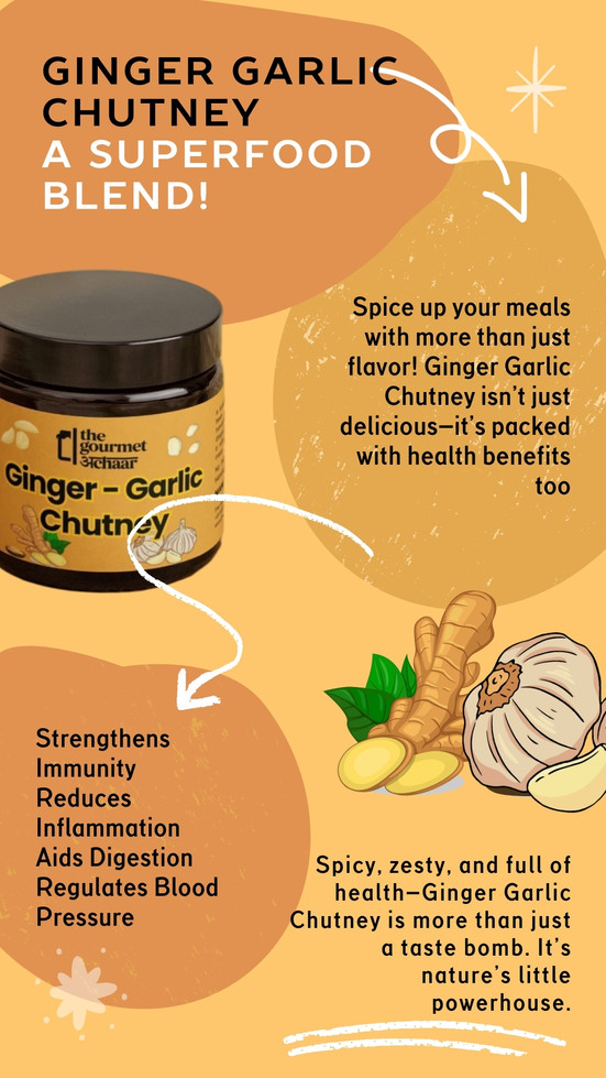 Indulge your senses with The Gourmet Authentic Adrak Lehsun Chutney: Spicy & Aromatic Indian Spread. Crafted from the finest organic ingredients, this chutney blends the robust flavors of ginger and garlic, offering a delectable addition to any meal. Welcome to the gourmet by renuka, where we take pride in providing fresh, high-quality, and sustainably sourced organic foods that nourish both body and soul. Perfect as a spread or a dip, our Adrak Lehsun Chutney embodies the essence of traditional Indian cuisine. Elevate your culinary experience with this flavorful chutney today.